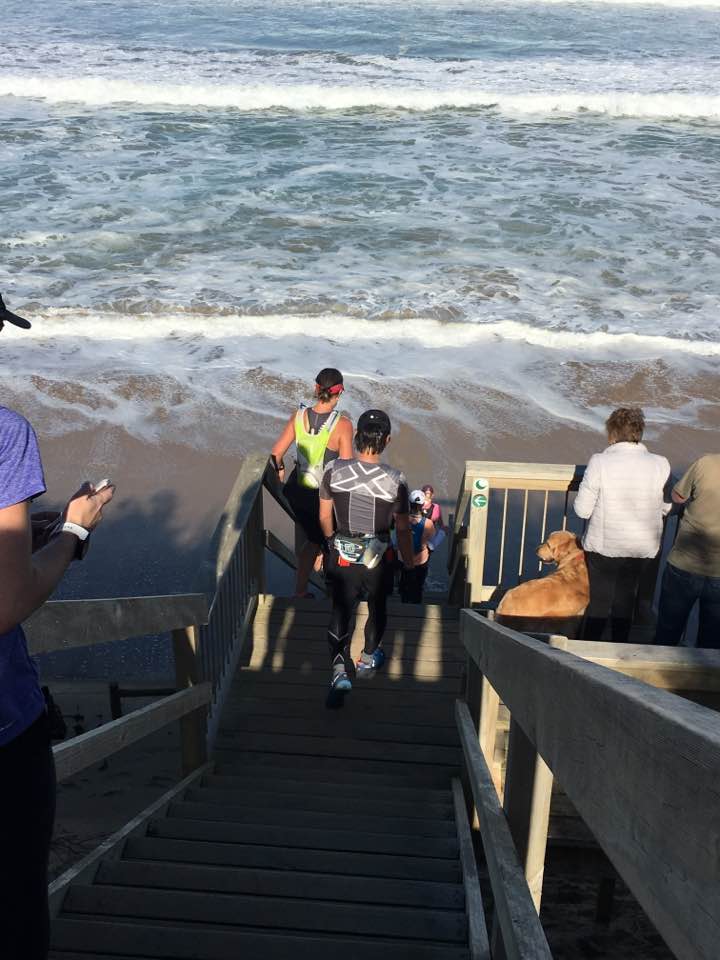 Someone had told me the course was flat. Not even close, Sure the beach sections were flat but they were really tough. I couldn't run on the soft sand and spent a lot of the time dodging the waves lapping at the dunes.